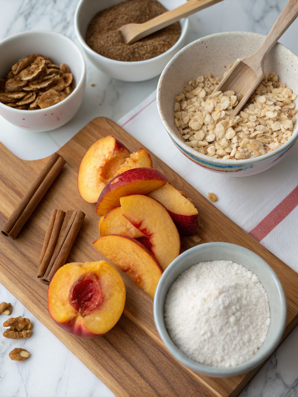 | Peach preparation | Leave peach slices fairly thick (about ½-inch) so they maintain structure while baking |